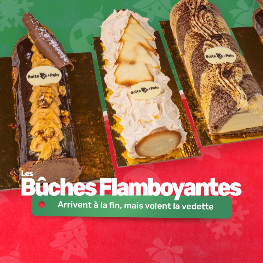 Bûches artisanales disponibles en trois saveurs :